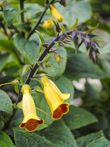 Plante vivace de sous-bois, subtropicale s'étalant pas rhizomes. En automne, elle produit des hampes de fleurs proche des digitales, jaunes, à gorge rouge cuivré. Feuillage semi-persistant, luxuriant. Rusticité jusqu'à -7°C.