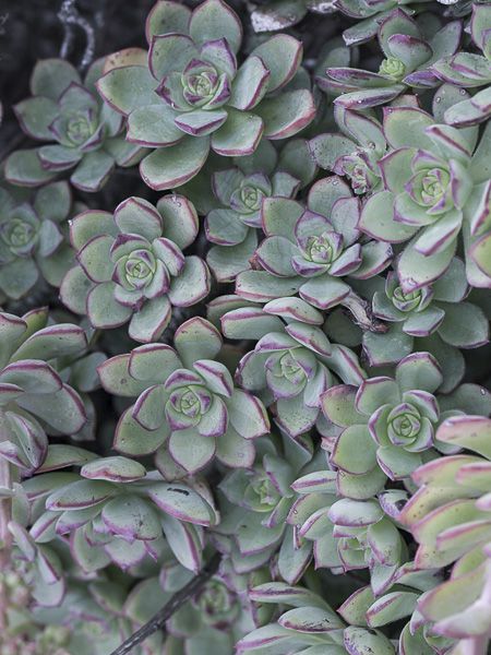 Vivace succulente pour conditions chaudes et sèches, formant un petit buisson ramifié. Au bout des tiges, rosettes de feuilles épaisses, gris-bleuté pâle bordé de rouge pourpré. Elle produit de courtes hampes de fleurs jaunes.