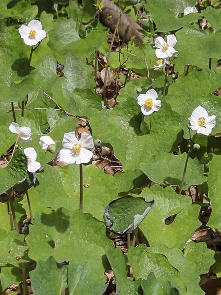 Vivace vigoureuse, étalée. Feuilles de 4-10 cm de diamètre, coriaces, cordiformes à réniformes ou sagittées, vert grisâtre mat. Panicules légères de fleurs de 2-5 cm de diamètre, blanches, scintillantes.