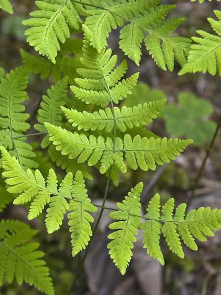Fougère couvre-sol s'étendant par ses rhizomes. Frondes triangulaires, vert tendre. Très résistante, elle colonisera une zone d'ombre fraîche.
