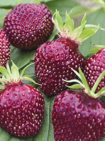 Non remontant. Fraises rouge foncé, évoluant au pourpre, parfumées, très sucrées, aux arômes de fraise, de mûre et de cerise.
