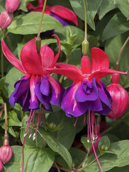 Florifère et très colorés, les fuchsias hybrides sont cependant moins rustiques que les Fuchsia de Magellan. La plantation des jeunes sujets et la sortie des potées devra attendre les dernières gelées. La terre doit rester humide mais pas détrempée. Selon vos régions, les espèces moins rustiques devront être taillées de moitié en octobre et protégées durant l'hiver, les plus résistantes devront être rabattues au ras du sol et la souche être protégée.