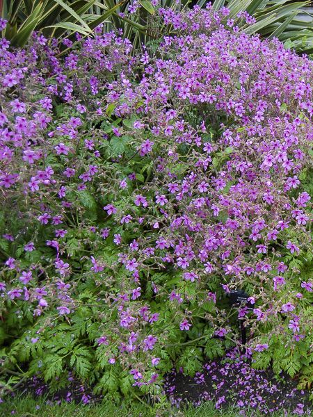 Un géranium botanique, proche du géranium de madère, d'une rusticité moyenne. Il atteint 1,20 m de hauteur. Il produit de grandes panicules de fleurs rose pourpré, à centre cramoisi.