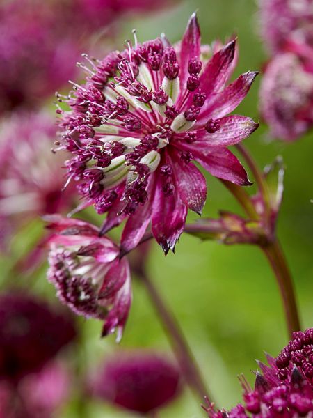 Vivaces très à la mode, les astrances sont appréciées pour leur longue floraison estivale et leurs inflorescences originales hérissées dans les tons roses, pourpres ou blanc, avec une pointe de vert. Les fleurs délicates apparaissent au sommet de tiges raides. Les fleurs sont en fait des inflorescences composées de dizaines de fleurs minuscules en ombelle et cernées d'une couronne de bractées colorées. Les astrances se plaisent à peu près dans tous les sols frais, le calcaire ne leur fait pas peur. Elles peuvent se ressemer, sans être envahissantes. Toutefois, la couleur des inflorescences des plantes issues de semis peut être différent de celui du pied mère. Les fleurs séchées sont appréciées en bouquet. Les astrances préfèrent un sol humifère et frais. Une sécheresse passagère stoppe leur floraison