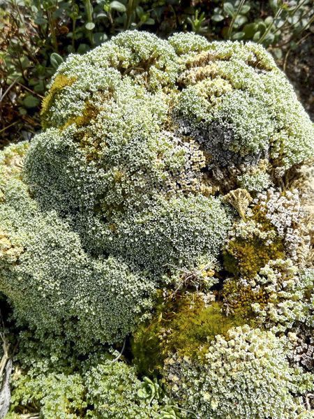 Vivace très dense. Coussinets de minuscules feuilles persistantes de 2-5 mm de long, oblongues, charnues, gris-vert. Petites fleurs solitaires, sessiles, blanches, étoilées.