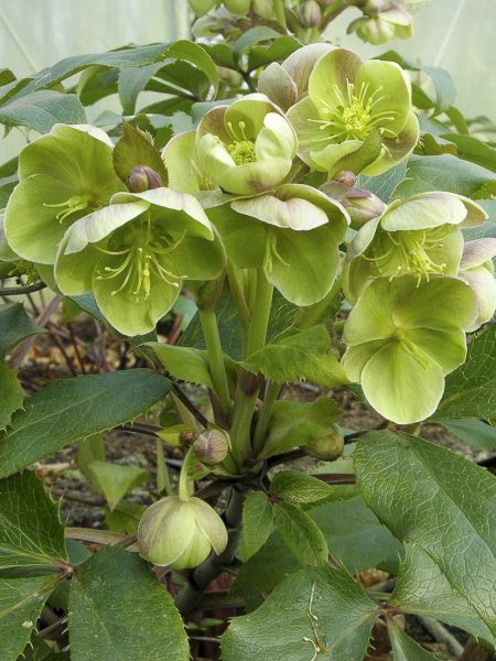 Genre riche d'une quinzaine d'espèces, Helleborus est surtout connu pour son espèce H. niger, la fameuse Rose de Noël. Cette dernière porte bien son nom puisqu'elle peut fleurir de novembre jusque fin mars. Mais d'autres espèces et la mise sur le marché ces dernières années de cultivars colorés permettent de renouveler l'intérêt pour les jardins en hiver. Du joli feuillage persistant et assez coriace émergent de belles fleurs gracieuses, se déclinant du vert au pourpre foncé, en passant par le blanc, le jaune et toutes les nuances de rose. Leur longue floraison est un atout supplémentaire, tout comme la bonne tenue des fleurs en vase. Plante vivace à racines charnues voire tubéreuses pour certaines, l'hellébore aime les terres riches, humifères, fraîches et plutôt neutres. Elle pousse bien en sol argileux mais il faut quil soit bien drainé. Leau stagnante peut la faire pourrir. Les hellébores (sauf H. argutifolius et H. foetidus qui aiment le soleil) préfèrent les situations mi-ombragées, alors une plantation sous l'ombre claire de grands feuillus les comblent. Ce sont des plantes faciles à vivre mais qu'il ne faut pas stresser. Ces vivaces ont aussi la réputation d'être casanières : une fois bien installées, elles n'aiment pas être transplantées. Les jeunes plantes peuvent mettre 2 à 3 ans avant de fleurir, parfois plus, mais ensuite, il n'y aura plus de problème. Elles forment alors de jolies touffes. Etonnamment, les fleurs persistent longtemps. Au fil des semaines, leur couleur fonce mais elles ne fanent pas comme la plupart des fleurs, elles se dessèchent plutôt. La multiplication se fait par division de souche pour toutes les hellébores sauf H. argutifolius et H. orientalis qui se ressèment sans problème. Attention : toutes les parties des hellébores sont très toxiques. Il est conseillé de mettre des gants pour en cueillir les fleurs ou lorsq'uil faut les transplanter. Elles contiennent, entre autres, des saponosides, de l'hellébroside, un hétéroside, à action neurotoxique et cardiotoxique.