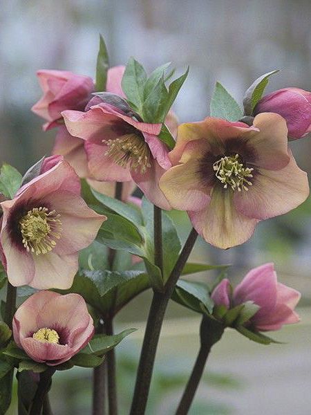 Genre riche d'une quinzaine d'espèces, Helleborus est surtout connu pour son espèce H. niger, la fameuse Rose de Noël. Cette dernière porte bien son nom puisqu'elle peut fleurir de novembre jusque fin mars. Mais d'autres espèces et la mise sur le marché ces dernières années de cultivars colorés permettent de renouveler l'intérêt pour les jardins en hiver. Du joli feuillage persistant et assez coriace émergent de belles fleurs gracieuses, se déclinant du vert au pourpre foncé, en passant par le blanc, le jaune et toutes les nuances de rose. Leur longue floraison est un atout supplémentaire, tout comme la bonne tenue des fleurs en vase. Plante vivace à racines charnues voire tubéreuses pour certaines, l'hellébore aime les terres riches, humifères, fraîches et plutôt neutres. Elle pousse bien en sol argileux mais il faut quil soit bien drainé. Leau stagnante peut la faire pourrir. Les hellébores (sauf H. argutifolius et H. foetidus qui aiment le soleil) préfèrent les situations mi-ombragées, alors une plantation sous l'ombre claire de grands feuillus les comblent. Ce sont des plantes faciles à vivre mais qu'il ne faut pas stresser. Ces vivaces ont aussi la réputation d'être casanières : une fois bien installées, elles n'aiment pas être transplantées. Les jeunes plantes peuvent mettre 2 à 3 ans avant de fleurir, parfois plus, mais ensuite, il n'y aura plus de problème. Elles forment alors de jolies touffes. Etonnamment, les fleurs persistent longtemps. Au fil des semaines, leur couleur fonce mais elles ne fanent pas comme la plupart des fleurs, elles se dessèchent plutôt. La multiplication se fait par division de souche pour toutes les hellébores sauf H. argutifolius et H. orientalis qui se ressèment sans problème. Attention : toutes les parties des hellébores sont très toxiques. Il est conseillé de mettre des gants pour en cueillir les fleurs ou lorsq'uil faut les transplanter. Elles contiennent, entre autres, des saponosides, de l'hellébroside, un hétéroside, à action neurotoxique et cardiotoxique.