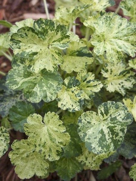 Vivace tapissante. Feuilles de 2-8 cm de long, arrondies, réniformes, faiblement lobées, dentées, tapissées de poils glanduleux, vert foncé, marbré de vert pâle. Grandes fleurs tubulées, rouges, roses ou blanches, en panicules légères de 7-15 cm de long.