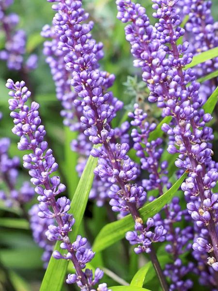 Les Liriope sont des vivaces de mi-ombre qui s'accommodent à peu près de toutes les expositions. Elles forment des cousins de feuilles plus ou moins persistantes, linéaires vert brillant, parfois panaché de blanc. De petits épis de fleurs bleues, parfois blanches, s'épanouissent en été. Il s'étale doucement, leur croissance étant assez lente. Le genre Liriope est souvent confondu avec Ophiopogon, tellement ils sont proches. Installez-les dans sol ni trop lourd, ni trop calcaire, plutôt en bordure de massif.