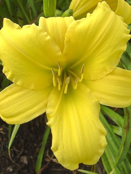 Hémérocalle aux fleurs de 12 cm de diamètre, jaune canari.