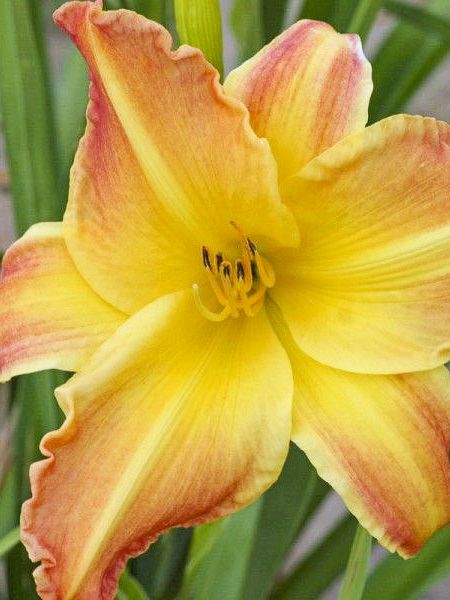 Hémérocalle aux fleurs parfumées, de 12 cm de diamètre, en dégradé rouge à jaune.