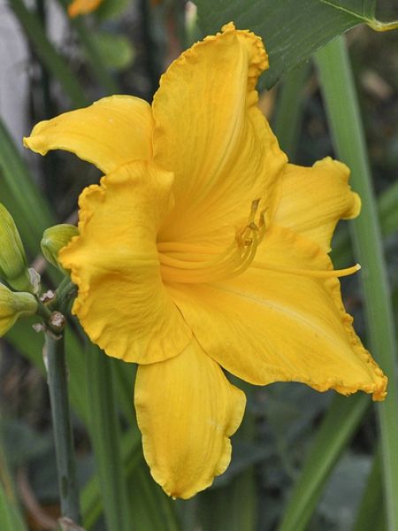 Hémérocalle aux fleurs de 12 cm de diamètre, à pétales frangés, jaune safran.