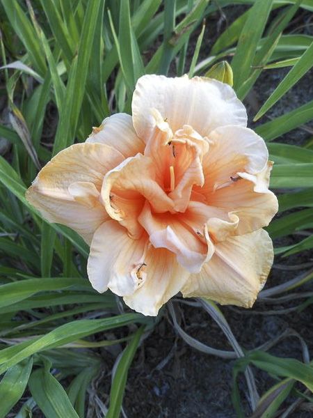 Hémérocalle aux fleurs doubles de 12 cm de diamètre, en dégradé d'orange mandarine à crème.