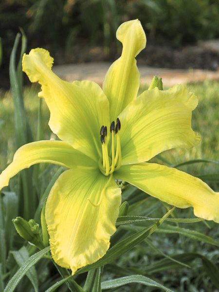 Hémérocalle aux fleurs parfumées, de 12cm de diamètre, jaune citron à reflets verts.
