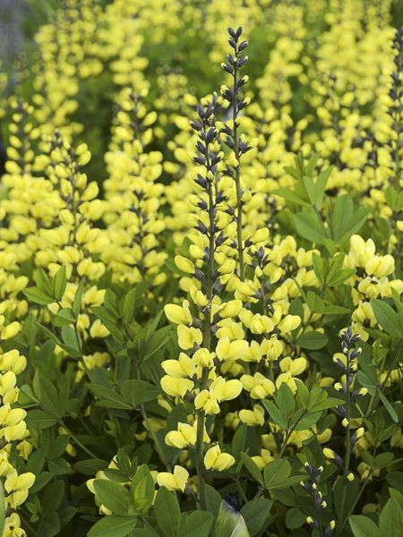 Le Baptisia australis ne manque pas de charme. Les fleurs d'un beau bleu indigo sont disposées en épis lâches le long de tiges souples. Les feuilles à trois folioles, vert bleuté disposées le long de tiges érigées forment de belles touffes très décoratives. Les fleurs sont suivies de petites graines contenues dans des gousses presque noires. Cette plante casanière vit très longtemps (plusieurs dizaines d'années). Comme elle a une racine pivotante de belle taille, une fois qu'elle est bien installée, il est déconseillé de la changer de place. Cette belle vivace demande de la patience. De croissance lente, il faut environ 5 ans pour qu'elle atteigne sa taille adulte et 3 ans pour que les premières fleurs apparaissent. Il est donc important de bien réfléchir à l'emplacement où elle sera installée. Facile à vivre, rustique, le Baptisia s'accommode de tous types de sols, même pauvres et légèrement calcaires, à condition qu'ils soient bien drainés. Il préfère les sols frais mais tolère les sols secs. La floraison sera alors moins abondante. Son allure champêtre en fait une plante idéale pour la réalisation d'un jardin sauvage ou naturel. Les fleurs tiennent bien en vase alors pensez à elles pour réaliser de grands bouquets champêtres. Le Baptisia demande peu d'entretien . Il faut juste rabattre la touffe en fin d'automne lorsque le feuillage a séché.