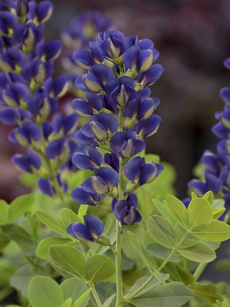 Le Baptisia australis ne manque pas de charme. Les fleurs d'un beau bleu indigo sont disposées en épis lâches le long de tiges souples. Les feuilles à trois folioles, vert bleuté disposées le long de tiges érigées forment de belles touffes très décoratives. Les fleurs sont suivies de petites graines contenues dans des gousses presque noires. Cette plante casanière vit très longtemps (plusieurs dizaines d'années). Comme elle a une racine pivotante de belle taille, une fois qu'elle est bien installée, il est déconseillé de la changer de place. Cette belle vivace demande de la patience. De croissance lente, il faut environ 5 ans pour qu'elle atteigne sa taille adulte et 3 ans pour que les premières fleurs apparaissent. Il est donc important de bien réfléchir à l'emplacement où elle sera installée. Facile à vivre, rustique, le Baptisia s'accommode de tous types de sols, même pauvres et légèrement calcaires, à condition qu'ils soient bien drainés. Il préfère les sols frais mais tolère les sols secs. La floraison sera alors moins abondante. Son allure champêtre en fait une plante idéale pour la réalisation d'un jardin sauvage ou naturel. Les fleurs tiennent bien en vase alors pensez à elles pour réaliser de grands bouquets champêtres. Le Baptisia demande peu d'entretien . Il faut juste rabattre la touffe en fin d'automne lorsque le feuillage a séché.