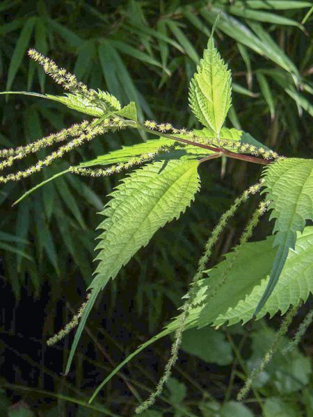Vivace proche de l'ortie, en plus élégant, formant une touffe élancée. Feuilles brillantes, lancéolées, dentées, vert franc, non urticantes. Discrets et fins épis blanchâtres.