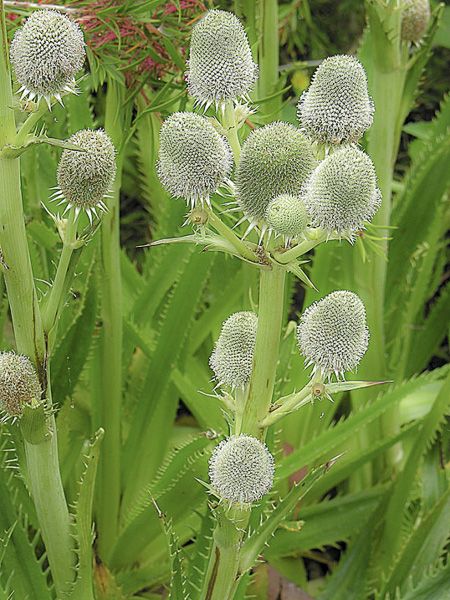 Autre chardon décoratif, celui-ci fait une rosette de feuilles vertes, brillantes, et des tiges florales aux nombreuses fleurs de taille moyenne, bleu ciel, qui se sèchent très bien. Il tolère mal un sol lourd et humide, surtout en hiver, et se plaît dans un sol plutôt pauvre.