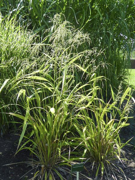 Graminée vivace d'ombre aux feuilles effilées, mais larges, vertes à revers bleuté, plus ou moins persistantes en hiver. Floraison en panicules d'épis floraux, blanc à argenté, suivies de graines rondes, décoratives.