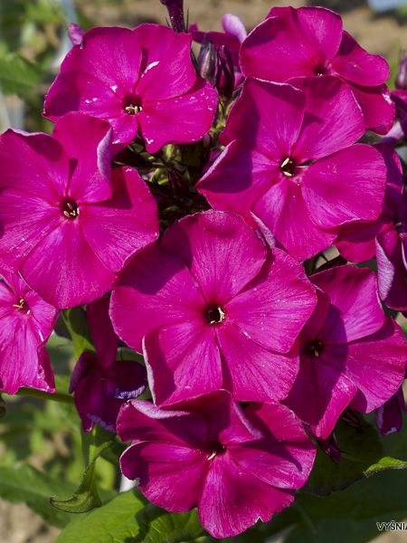 Très compact. Fleurs rose pourpré vif. Très florifère.