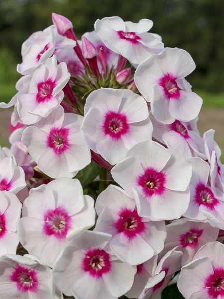 La floraison estivale des Phlox paniculata est spectaculaire dans les massifs de vivaces. La palette de couleurs de leurs fleurs varie dans tous les tons de rose, rouge, lilas, mauve et blanc. Suivant le choix des variétés, il est possible d'avoir des phlox paniculés en fleurs du début de l'été jusqu'au milieu de l'automne. Ce sont des bonnes fleurs à couper. Souvent parfumés, elles font le bonheur des insectes butineurs. Il est parfois nécessaire de les tuteurer en situation venteuse. Leur tige raide peut casser. Les phlox paniculés préfèrent les expositions ensoleillées. Ils acceptent la mi-ombre mais leur floraison sera moins luxuriante. Ils apprécient les expositions chaudes toutefois le sol doit rester frais. En situation très chaude, il ne faut pas hésiter à les arroser. Un paillis sera le bienvenu pour limiter l'évapo-transpiration. Il est conseillé de couper les fleurs fanées pour favoriser la production de nouvelles fleurs. Leur seul problème est l'oïdium qui peut s'installer dans certaines situations. Il est préférable de traiter préventivement pour éviter cet inconvénient. Les fleurs des phlox paniculés sont comestibles. Toutefois, il ne faut les consommer que si elles ont été cultivées naturellement (sans utilisation de produits phytosanitaires). Elles s'utilisent dans les crudités, les salades de fruits ou confites. par exemple. Phlox paniculata n'est pas connu pour déclencher d'allergies. A privilégier pour la conception d'un jardin sans allergie.