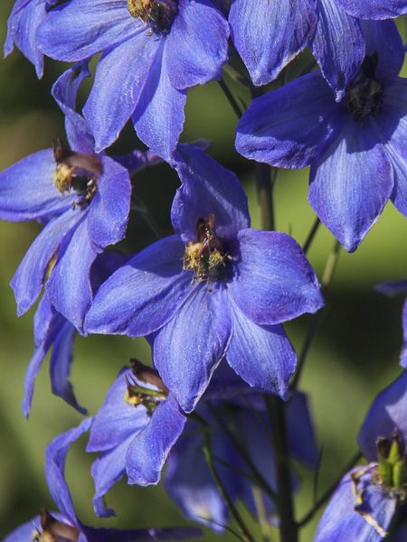 Les pieds d'alouette hauts et vivaces sont imposants et produisent de superbes hampes de fleurs, tenant bien en vase, dans les bleus pur, violets, roses ou blancs. Malheureusement, ce ne sont pas les plus faciles à cultiver et à conserver. Il faut les planter dans une terre riche, fraîche, mais bien drainée, il n'apprécie guère l'humidité hivernale. Par contre, plus l'hiver est rude, plus ils sont beaux. Leurs ennemis : les limaces, qui les mangent avant même qu'ils sortent de terre au printemps. Leurs tiges florales cassent comme du verre. Au moindre coup de vent, elles se brisent sous le poids de leurs nombreuses fleurs. Donc, antilimaces dès le mois de février et tuteurage obligatoire. Si vous voulez les voir refleurir à la fin de l'été, il faut couper les hampes fanées, à la base, dès la défloraison et avant la montée à graines. Cette opération évitera l'épuisement de la plante, jusqu'à la mort. Ces problèmes se rencontrent beaucoup moins avec les variétés basses, inférieures à 1,50 m.