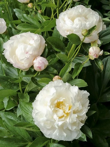 Qu'elles soient arbustives ou herbacées, les pivoines offrent printemps après printemps parmi les plus belles fleurs de nos jardins. Simples, semi-doubles ou doubles, les pivoines offrent un vaste choix de coloris, du blanc le plus pur au rouge sombre, en passant par toute une gamme de rose. Certaines pivoines arbustives arborent même des couleurs jaunes ou orangées. Quand en plus, elles sont parfumées, le bonheur est complet. Malheureusement, ces beautés ont un petit défaut : leur floraison est de courte durée, de 8 à 15 jours maximum. Qui plus est, les fleurs souffrent vite des aléas climatiques : un peu de pluie ou de vent écourte leur floraison. Malgré tout, leur beauté fait vite oublier ces petits inconvénients. A chaque jardinier ensuite, le plaisir de leur associer des plantes dont la floraison viendra prendre leur suite.
