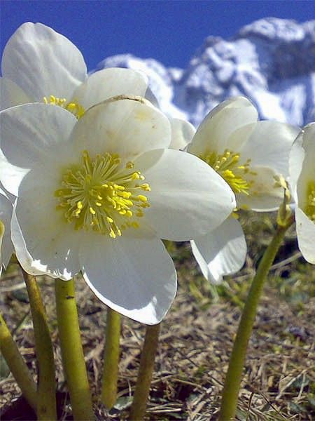 — Plante glabre, brune, marbrée ; tige annuelle, nue, portant dans le haut 1-3 bractées ovales, entières ou fendues ; feuilles toutes radicales, coriaces, pédalées, à 7 segments oblongs en coin, dentés au sommet ; fleurs blanches ou d'un blanc rosé, grandes, solitaires ou géminées ; sépales étalés, à peine concaves ; pétales à peine plus courts que les étamines ; follicules plus longs que larges, à bec égalant leur longueur. Basses-Alpes et Hautes-Alpes, où il est très rare. Europe centrale, depuis le Tessin jusqu'à la Roumanie. = Janvier-Avril — Cultivé dans les parterres.