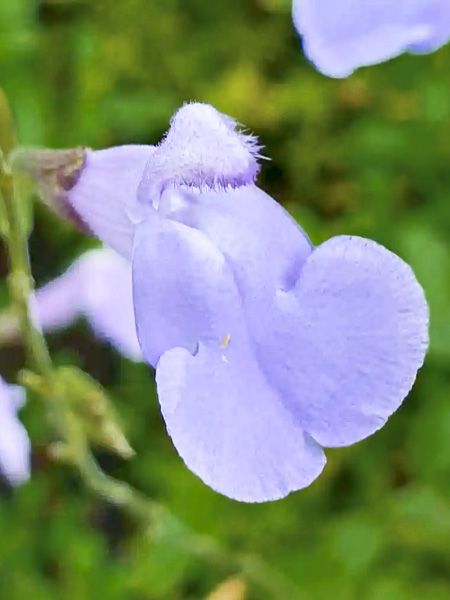 Nouvelle variété de sauge arbustive au feuillage aromatique produisant des grappes de fleurs réunies par paires, mauve bleuté