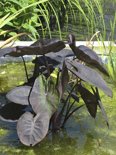 Un taro de taille relativement modeste aux feuilles en cœur, vert très sombre, jusqu'au noir. Rustique jusqu'à -8°C.