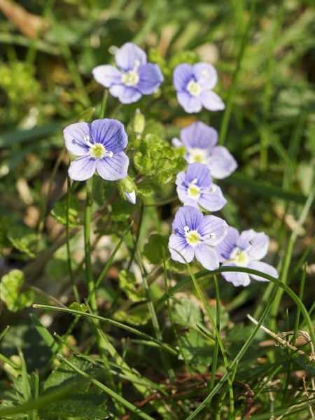 Sous ses aspects fragiles, cette véronique est une redoutable envahisseuse. Elle est cousine de la véronique annuelle "mauvaise herbe", mais celle-ci est vivace avec d'innombrables petites feuilles rondes bien tapissantes. Ses petites fleurs sont bleues à mauve pâle. Elle peut être utilisée pour remplacer un coin de gazon.